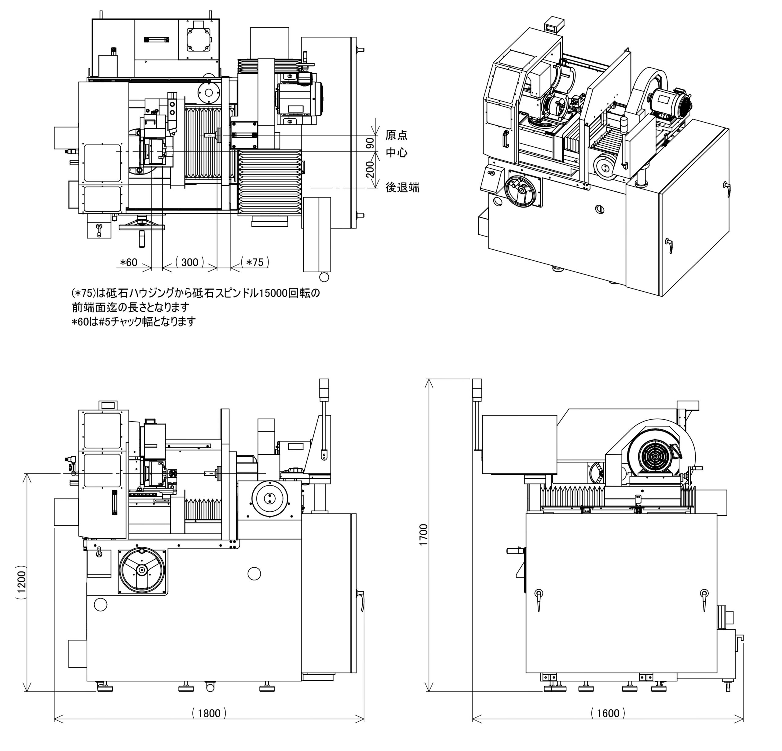 ※1スピンドル軸端より、砥石スピンドルハウジング端面迄の距離です。